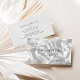 This elegant modern business card features an image of white silk, framed on the top and bottom by grey and white watercolor agate borders trimmed with sparkly silver faux glitter. Personalise it with your name in off-black handwriting-style script and your business information in sans serif font. The reverse is a coordinating shade of pale grey.