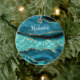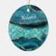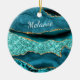 Agate Teal Blue Gold Custom Name Aqua Turquoise Ceramic Ornament