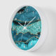 Agate Teal Blue Gold Glitter Marble Aqua Turquoise Clock