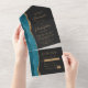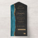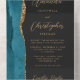 Agate Teal Blue Gold Script Dark All In One Invitation