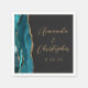 Agate Teal Blue Gold Script Dark Wedding Napkin