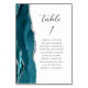 Agate Teal Blue Silver Modern Script Wedding Table Number