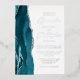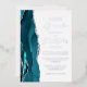 The left-hand edge of this elegant modern wedding invitation features a teal blue watercolor agate border trimmed with faux silver glitter. The customisable text combines script and sans serif fonts in real silver foil on a white background. The reverse side features a matching agate design.