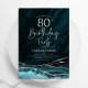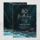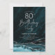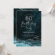 Teal and silver agate 80th birthday party invitation. Elegant modern design featuring turquoise watercolor agate marble geode background, faux glitter gold and typography script font. Trendy invite card perfect for a stylish women's bday celebration. Printed Zazzle invitations or instant download digital printable template.