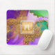 A sparkly, faux gold foil square with a script typography monogram initial overlays a rich, gold veined, purple, green, aqua, and pink watercolor background on this elegant, trendy, girly, monogramed mousepad. Makes a chic and stylish statement every time you use it. A great gift for a friend, as well as yourself!