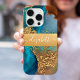 A sparkly, faux gold foil band with your script typography name overlays a rich, gold veined, turquoise blue, and yellow orange watercolor background on this chic, elegant, modern cell phone case. Personalise with your name. Makes a fun and stylish statement every time you use it. A great gift for a friend, as well as yourself!