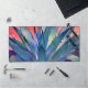 This colourful desk mat features a close-up view of a blue agave plant against a colourful orange desert sunset sky. This modern art abstract image features pretty shades of blue, green, teal, purple, pink, orange and peach. Perfect for home, office or dorm, this bold, vibrant mat makes a great gift for her or him. Click "Personalise this Template" to easily change or remove the featured sample text.