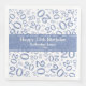 This modern numerical design is a blue and white random number pattern with the blue milestone number 20 repeated in varied sizes and angles over a white background. The blue banner in the centre has three lines of text: "Happy 20th Birthday," your name, and your birth date. Each line has a text template so you can easily personalise it.