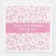 This modern numerical design is a pink and white random number pattern with the pink milestone number 25 repeated in varied sizes and angles over a white background. The pink banner in the centre has three lines of text: "Happy 25th Birthday," your name, and your birth date. Each line has a text template so you can easily personalise it.