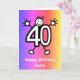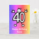 Cute cartoon of a number forty with a smiling face and hands and feet. Age 40 years old funny cartoon. Card has a colourful glitter effect background. Send this card to celebrate a fortieth birthday! Easily personalise this card by editing the template text on the front and inside. Thanks for viewing my designs!