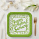 This over-the-hill pattern has a green and white random number pattern with milestone number 50 repeated in varied sizes and angles for an all-over print. There is a white square in the centre for your text and a green and white frame around the rim.