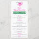 Personalise this pink and green menu with your own food choices. Great for birthday parties, bridal showers, banquets, and any other event.