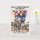 Funny birthday card lettered with elephant themed play on words "age is irrelephant". You can personalise the card front and the message inside. Design features watercolor illustration of elephants on the savannah with colourful birthday balloons drifting into the sky. Fun card with light-hearted, age related humour for friend or relative and easy to personalise with name or relation. Matching mug available in my store.