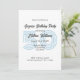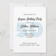 Simple birthday party invitations in white with black text. The age of the recipient is printed as the background in light blue. Text templates are black and reverse is also light blue. Shown on upgraded textured paper which is easy to change.