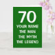 Age specific Birthday card | The man myth legend. Funny 50th Birthday greeting card for men. Humourous card idea for dad, husband, uncle, grandpa, brother etc. Personalizable wishes text like Happy Birthday. Seventy year old. 70th Birthday, customisable age number.