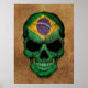 This unique design features the flag of Brazil painted on an aggressive skull. The Brazilian colours cover the entire skull with large cracks snaking across the bone. The skull sits on a aged, worn out background with natural brown colours which gives the pattern a vintage look. This dark pattern is a unique way to show off your patriotism.