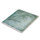 Original digital watercolor painting on this tile mimics the look of aged clay tiles in shades of bone white and aqua and each w/a different faded hand-painted botanical image such as white hydrangea, pale pink roses, orchids, and various feathery greenery.