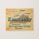 Aged antique paper Kentucky state pride image including map silhouette with cities, towns and nickname.