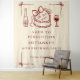 Celebrate in style with this Aged to Perfection wine-themed birthday backdrop, perfect for milestone birthdays like 30th, 40th, 50th, or 60th! Featuring a sophisticated burgundy and cream colour palette, whimsical hand-drawn doodles, funky squiggles, and playful illustrations of a birthday cake, wine bottle, and wine glass, this tapestry sets a festive and chic tone for your party. The elegant coquette bow frame and “Raise a Glass” motif make it an instant statement piece for photos and party decor.
