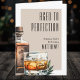 A folded birthday card featuring a bold whiskey-themed design. The front shows a watercolor whiskey bottle and glass on the right, paired with the phrase “Aged To Perfection” at the top in classic serif typography. Beneath it, space is provided for “Happy [Age] Birthday [Name]” so you can personalize it for any milestone or year.