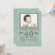 Aged look wood in a sea foam colour 40th birthday photo frame invitation for him or her. Look Who's Ninety, upload a favourite photo of any age and customise text for your party.