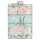 Aged Wood Monogram Name with Hydrangea Bloom Hip Flask