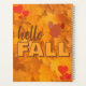 Una agenda con una imagen de un perro jugando o acostado entre hojas con texto en inglés "hello FALL"