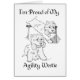 Tell the world how you feel about that special West Highland White Terrier who excels at Agility! I am proud of my agility Westie! Created from my original pen and ink sketch artwork, this design is available on clothing, novelty and gift items!