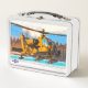 This is a standard metal lunchbox that appears to work just fine. We designed this box ourselves with an uploaded photo and custom text on the front and back. It looks absolutely beautiful except the front of the lunchbox is not centered like it shows in the photo. The print borders don't align with the inset flat part of the box where the preview photo online showed it perfectly centered in there. The back looks nice and centered though.
