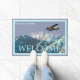 A digital painting of a de Havilland DHC-3 Otter, operated by mythical Flying Moose Aviation of Talkeetna, Alaska, flying over a snow-covered mountain range. The leading edge of an approaching snowstorm can be seen coming up over the mountains in the near background. Text reading "WELCOME" also appears. You may add your own additional text.