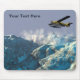 A digital painting of a de Havilland DHC-3 Otter, operated by mythical Flying Moose Aviation of Talkeetna, Alaska, flying over a snow-covered mountain range. The leading edge of an approaching snowstorm can be seen coming up over the mountains in the near background. Add your own text.