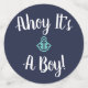 Classic navy and white Ahoy It's A Boy confetti that is meant to be customised with your due date with solid navy on one side and navy stripes on the other with touches of light teal