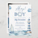 'Ahoy It's A Boy' nautical baby shower invitation, personalised with your name and special date. The reverse features your special photo and a registry QR code. Designed by Thisisnotme©