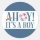 Ahoy Its a Boy Blue Typography Classic Round Sticker
