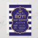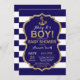 Ahoy it's a Boy! Nautical Baby Shower Invitation. Navy Blue and Gold Glitter. Navy Stripes background. For further customisation, please click the "Customise it" button and use our design tool to modify this template.
