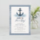 Celebrate the upcoming arrival of your little sailor with this charming nautical themed baby shower invitation! Featuring a watercolor anchor wrapped in rope, gentle ocean waves, and a classic navy blue stripe border, this "Ahoy, It’s a Boy!" design is perfect for a sea inspired celebration.