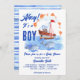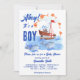 Ahoy it's a boy nautical marine baby shower invitation template with whales, little fish, a boat, ocean theme.
