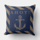Ahoy! Nautical Anchor With Navy Blue & Burlap Stripes Cushion Throw Pillow