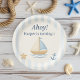 Celebrate your little sailor in style with this adorable nautical-themed birthday paper plate! Featuring soft pastel blue and white stripes, a watercolor sailboat floating on gentle waves, and the sweet phrase “Ahoy! ,” this plate is perfect for ocean-inspired or beachside birthday parties. Accented with a cute anchor and starfish, this design brings the whole sea-themed celebration together.