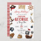 I chose the larger postcard sized one, as the font would be large for older eyes, and customised it keeping the Rail Ticket theme on the front, with venue address/date/time of party, and on the back I added another steam train and various 80 speed limit/rail signages. The trick is not to overdo it or it looks too busy. I also added at one end of the front side, a word of thanks from the birthday boy.