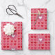 This is a set of three sheets of pink and red wrapping paper. The design was created with artificial intelligence art. The design features red, pink and white hearts on a pink background. The wrapping paper has grid guidelines on the back to make folding easier. The colours on the wrapping paper are pink, red and white. The wrapping paper is printed in the USA.