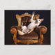 AI-Generated image of a dog sitting on a cushion highback or throne chair.