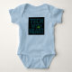 Tech lovers come in all ages. Adorable bodysuit with Tech With Heart Design and cute frog peeking out on the front and Heart with AI on the back. Infant's light blue bodysuit. 100% cotton.