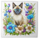 Ai Watercolor Siamese Cat in Flowers Ceramic Tile