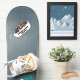 Stylised design of the spectacular Aiguille du Midi (3,842 m / 12,605 ft) which is a mountain in the Mont Blanc massif within the French Alps, towering above Chamonix. It can be visited by taking a breathtaking (literally) cable car ride from the town below. Souvenir sticker for those who dared!