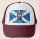 The trucker hat above features the Scottish flag with the Aikenhead clan badge and tartan. Translation of the motto is "We are born in a weak condition". Show off your Scottish pride at family reunions, festivals and around town! There is no registered tartan for Clan Aikenhead so the Stirling & Bannockburn District Tartan is worn. Like the hat says" Proud to be Scottish"!
