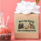 The best parties are camping in the woods! This funny design shows bears, elk, squirrels, rabbits and other animals partying, smoking, drinking beers, and roasting marshmallows around a camp fire.