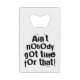 Funny slogan text design bottle opener with the phrase Ain't Nobody Got Time For That. Add additional text to give this design a personal touch.