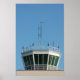 Photograph of the top of a tall air traffic control tower with large antennae jutting into the blue sky