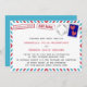 Airmail Destination Wedding In Cyprus Invitations in red white and blue. Easily customisable for you to add your own details. Image of blue stamp with two red hearts. Postmark reads: Our Sweet True Love. Each invite comes complete with a white envelope.